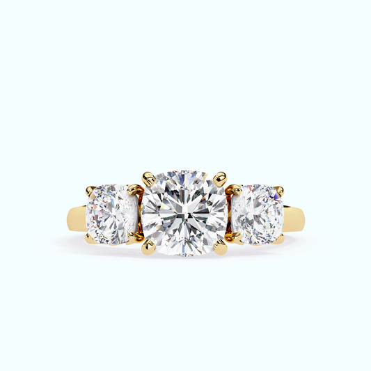 Three Stone Square Cushion Ring